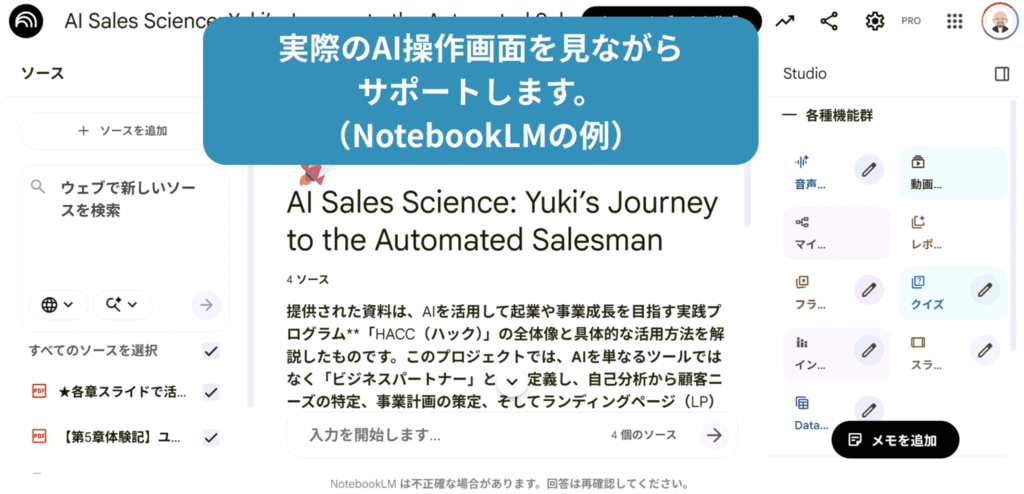 HACC自体が、AIを私の伴走者として活用した商品であることは、